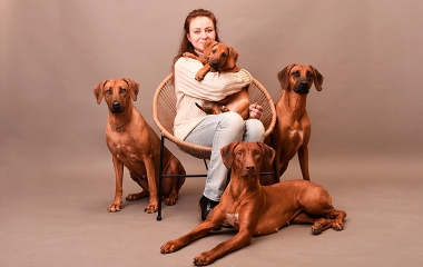 "Моим первым Риджбеком стала Уна или официально RR’Shuffling Motion Un’Unika разведения одного из лучших питомников России. Она сочетает в себе интересные крови от истоков российского разведения, австралийского и американского со стороны отца, и российского с африканским со стороны матери из питомника Divo Severa. Уна — моя душа, моя тень, до сих пор способная меня приятно удивлять. Именно благодаря Уне я изменила всю свою жизнь и сферу деятельности. Чтобы понимать все изнутри, я с головой окунулась в изучение здоровья, физического развития, психологии и генетики. К своему высшему экономическому образованию в 30 лет я добавила образования: заводчик, дог-фитнес и аква тренер, массажист. Данные направления кинологии в настоящее время и являются моей основной деятельностью и призванием. Я работаю со всеми породами собак уже более 6 лет."