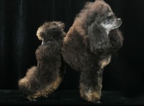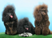 В 2008 году мы завели Пуделей расцветки арлекин – обладателей роскошного черно-белого окраса, а в 2009-м – фантомов (шерсть имеет оригинальный черно-подпалый цвет).