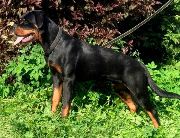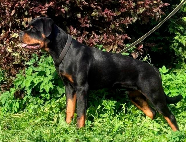 Парень имеет атлетичное, сухое сложение, великолепно двигается. У него отличный костяк, красивая породная голова, крепкие лапы и наполненная морда. Мужественный и уверенный в себе парень с устойчивой психикой.