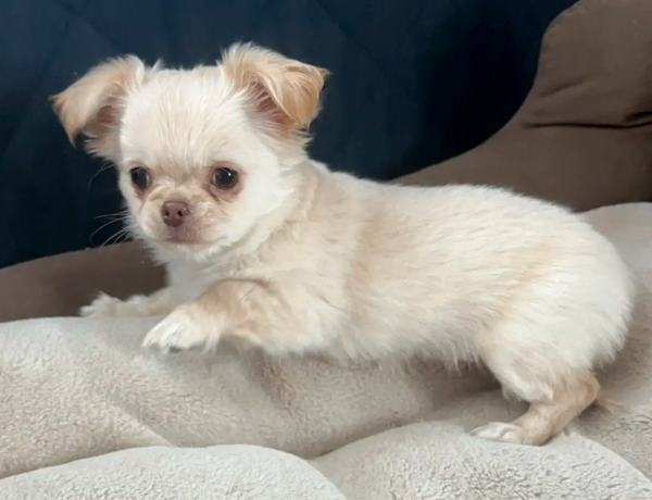 Девочка от красивых породных родителей. В современном типе, с курносым носиком, очень забавными ушками и красивыми умными глазками. Размер малый стандарт, без брака и недостатков, прикус норма, зубки 6/6, хвостик сабелькой. Окрас кремовый, длинношерстная.