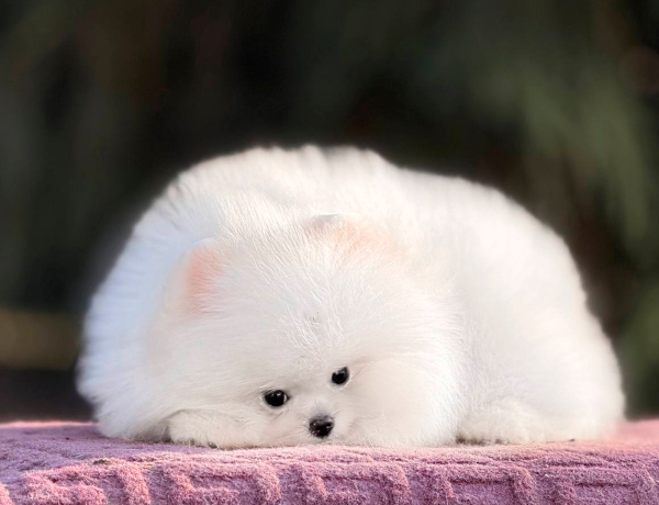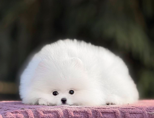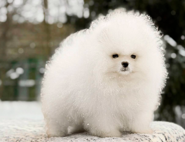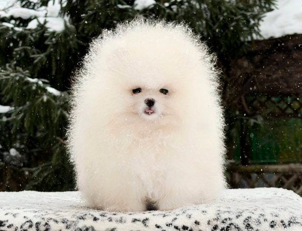 Отлично сложен, 100% померанец в медвежьем типе. Не крупный, ожидаемый вес 3 кг., рост 22 см, квадратненький, с красивой головой, очень милой мордочкой. У мальчика шикарная шубка, густой подшерсток и чистый белый окрас.