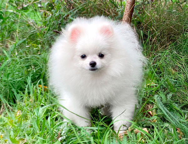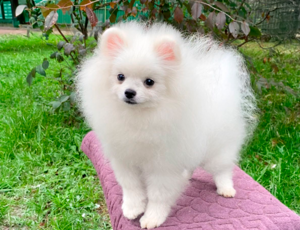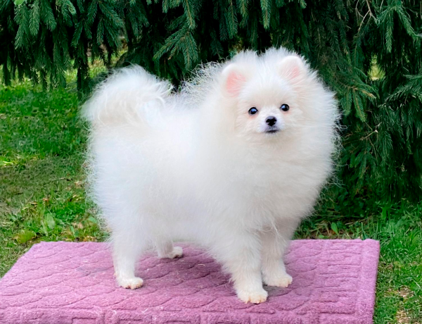 Пушистый, белоснежный обаяшка с потрясающими, розовыми ушками представляет породу Померанский шпиц. Мальчик миниатюрного формата, похож на воздушное облачко. Он одним своим появлением вызывает восторг и прилив позитива.