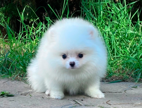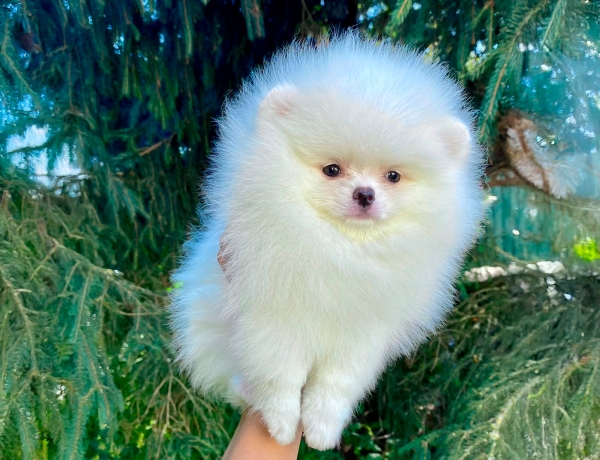 Белоснежная куколка с забавными, медвежьими ушками представляет породу Померанский шпиц. Она принесёт в ваш дом удачу и счастье. Подарит только самые позитивные эмоции.
