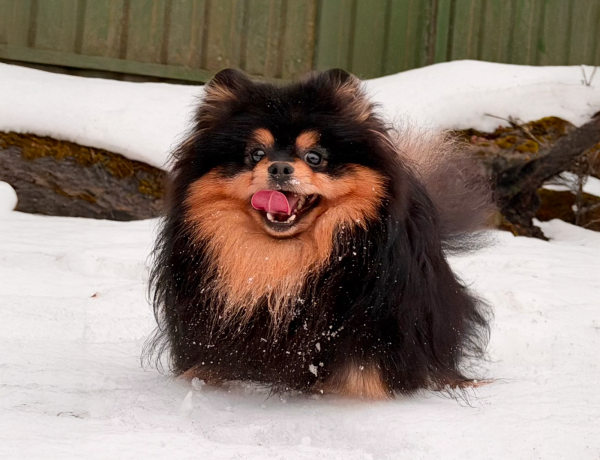 Он отлично сложен, не крупный вес 2,7 кг., рост 22 см., очень яркий и стильный. Очень пушистый, имеет роскошный, черный с подпалом, окрас.