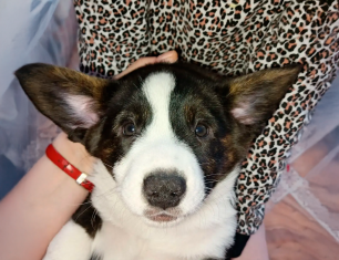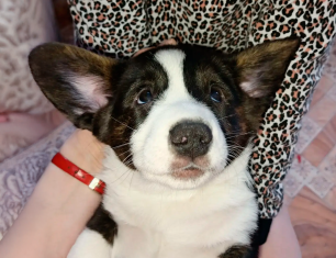 Безупречно элегантный джентльмен в черно-белом дресс-коде. Он - эффектный представитель породы Вельш-корги кардиган. Родители парнишки - красивая выставочная пара чемпионов, проверены на основные генетические заболевания.
