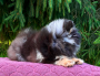 Миниатюрный парнишка, ожидаемый вес 3 кг., рост 22 см. Создан для сладких объятий. Уютный, кругленький, тактильный. Он отлично сложен, имеет великолепные пропорции, красивую голову, очень трогательную мордочку. Его богатая шубка прекрасного качества, интересного окраса, мерль.