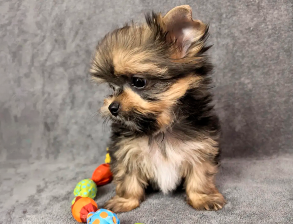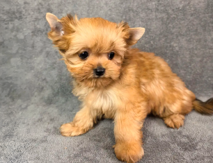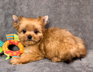 Мальчик Русской салонной собаки миниатюрного размера, ожидаемый вес до 2 кг. Малыш похож на плюшевую игрушку. У него очаровательная кукольная мордочка, милый курносый носик и глазки - бусинки. Шерсть мальчика шелковая на ощупь, идеального качества с красивым породным окрасом.