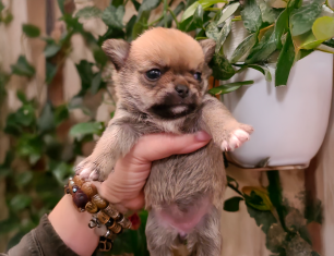 Это просто воздушное безе! Потрясающая, маленькая принцесса покорит ваше сердце с первого взгляда. Роскошная представительница породы Чихуахуа с блестящей родословной. Девочка происходит от красивых, породных, титулованных родителей.