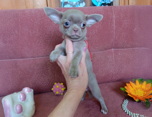 Эта кроха создаёт вокруг себя атмосферу праздника и беззаботности. Она представляет породу Чихуахуа, отличается яркой индивидуальностью. У малышки незабываемый взгляд и большие, порхающие ушки.