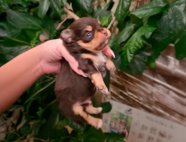 Супер-трогательный малыш породы Чихуахуа готов осчастливить своего будущего хозяина. Уютный, кругленький и курносенький. Перед ним невозможно устоять. Парнишка в современном типе, длинношерстный.