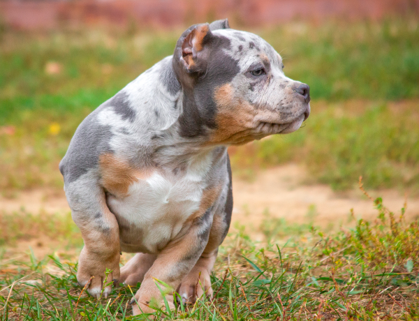 Мистер харизма! Парнишка с яркой индивидуальностью и фантастическим окрасом, голубой мерль, представляет породу Американский булли. Крепкий, брутальный малый, в превосходной физической форме.