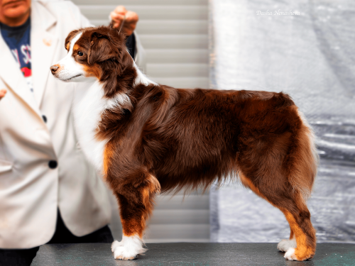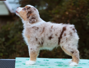 Очень элегантный, идеальный до кончика хвоста парнишка, представляет породу Миниатюрная американская овчарка. Мальчик происходит от красивых породных родителей. Папа щенка - импорт США.