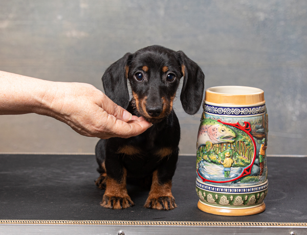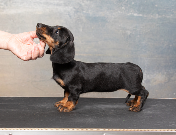 Девочка может похвастаться превосходными данными. Она отлично сложена, с красивыми пропорциями и восхитительной головой. Её блестящая шерсть идеального качества, стильного, чёрного с подпалом окраса. Без породного брака.