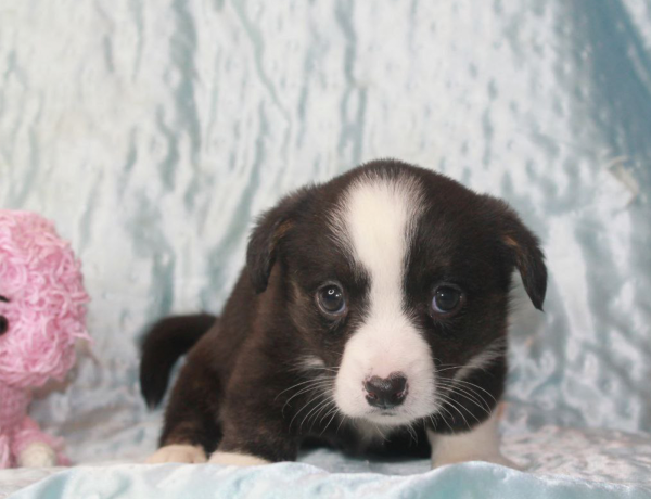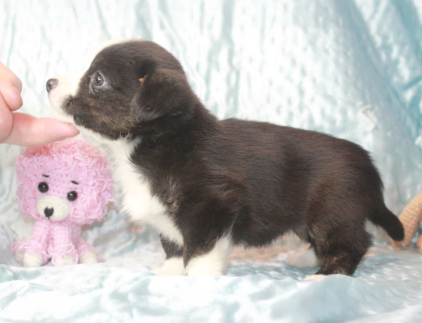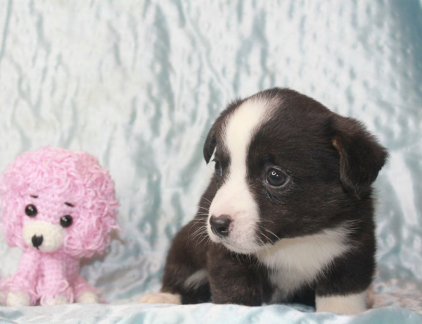 Девочка с яркой внешностью. Имеет красивый окрас триколор. Миниатюрная по сложению, но с правильными породными формами. Обладательница очаровательного взгляда. Полностью соответствует стандарту породы. Шерсть девочки правильной структуры.