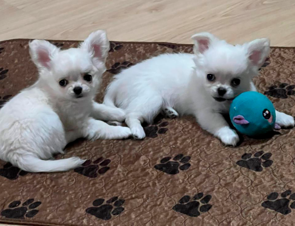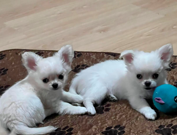 Белоснежная красотка представляет породу Чихуахуа. Обладает великолепными данными и непревзойденным очарованием.