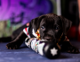 Малыш отлично сложен, с крепким спортивным сложением, правильным костяком, очень красивой головой и выразительной мордочкой. Мальчик имеет глубокий черный окрас с белым пятном на груди.