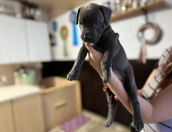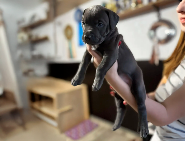 Маленькая принцесса отлично сложена, с крепким спортивным сложением, правильным породным костяком, очень красивой головой и выразительной, нежной мордочкой. Девочка имеет красивый голубой окрас с маленьким пятном на груди.