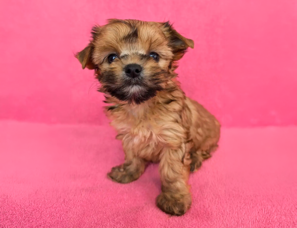 Элизабет отлично сложена, формат мини, с красивой головой, очень милой мордочкой. У малышки очень умный взгляд. Шелковая шерстка девочки правильной структуры с ярким рыжим окрасом. Здоровый и крепкий ребенок. Растет и развивается по возрасту.