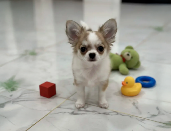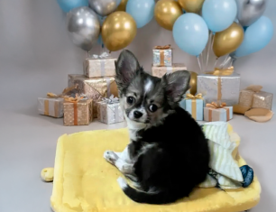 Кукольная длинношерстная малышка Чихуахуа с ярким окрасом "триколор", милейшей мордочкой и очаровательными ушками. В современном типе, с курносым носиком. Миниатюрная. Без брака и недостатков. Предлагается на самую мягкую подушку (не для разведения).