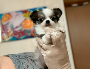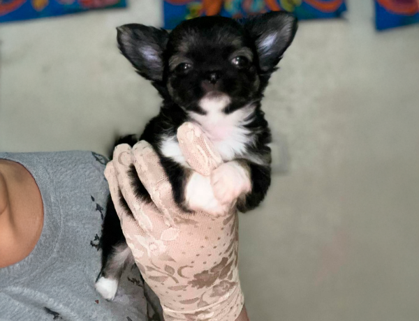 Длинношерстная малышка Чихуахуа с милейшей мордочкой и очаровательными ушками. В современном типе, с курносым носиком. Миниатюрная, вес 500 гр. Без брака и недостатков. Предлагается на самую мягкую подушку (не для разведения).