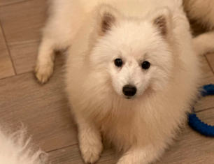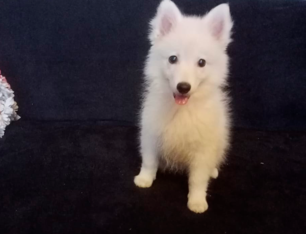Мальчик крепкий, отлично сложен, с красивой породной головой, выразительной мордочкой и улыбчивым выражением. Шерсть правильной структуры и породный белоснежный окрас.