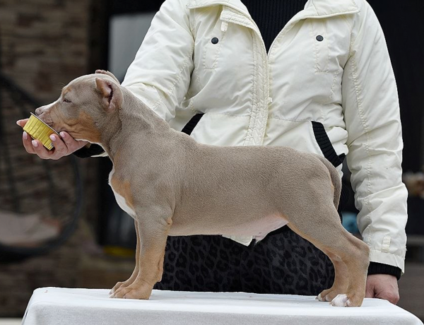 Мальчик ожидаемый тип стандарт или классик. Обладает крепким костяком, широкой грудной клеткой, массивными лапами, красивой головой и очень симпатичной мордочкой. Шерсть мальчика правильной структуры и нежный окрас лиловый триколор. Обещает вырасти настоящим красавчиком.