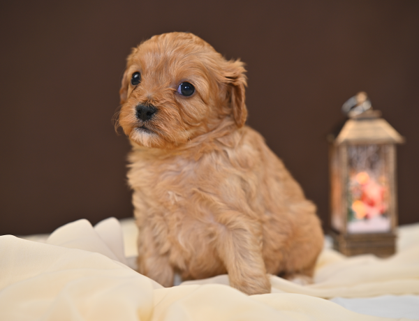 Миниатюрного размера, с красивым сложением, правильной головой, очень милой мордочкой и умным взглядом. Гипоаллергенная шерстка малышки идеального качества, шелковая на ощупь, яркого абрикосового окраса.