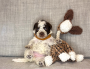 Девочка настоящая звездочка. Имеет яркую и выразительную внешность. Правильно сложена, с крепким костяком, красивой головой, очень милой мордочкой и очаровательным взглядом. Шерсть девочки правильной структуры, имеет великолепный породный окрас. Без брака и недостатков. Перспективна во всех отношениях.