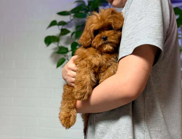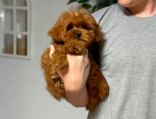 Маленькая принцесса Мальтипу. Девочка настоящая куколка, отлично сложена, некрупная, с очень милой мордочкой, выразительными глазками. Имеет гипоаллергенную плюшевую шерстку, яркий абрикосовый окрас.