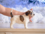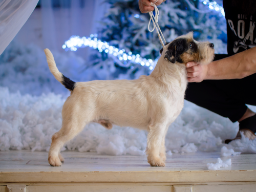 Девочка крепкого сложения, с красивыми формами и правильными углами, породной головой, белокорпусная, тип шерсти "брокен". Малышка перспективна как для выставок и племенного разведения, так и в качестве любимого друга и компаньона.