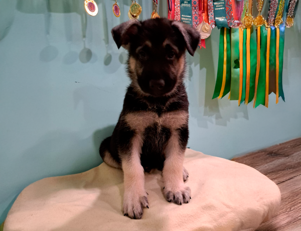 Образцово-показательный малыш, великолепный во всех отношениях. Он представляет породу Восточноевропейская овчарка. Происходит от красивых породных родителей. Помимо выставочной карьеры, родители имеют рабочие дипломы.