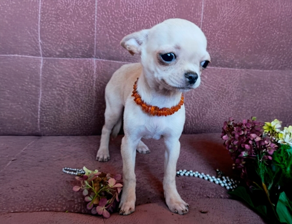 Вы только посмотрите на эту улыбаку! Сопротивление бесполезно! Потрясающая красавица породы Чихуахуа готова украсить вашу жизнь своим присутствием. Любительница строить глазки, она вызывает бурю позитивных эмоций и может рассмешить любого.